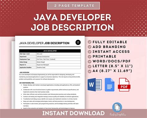 Java Developer Job Description Template, Java Programmer Role, Software Developer Responsibilities, Java Development Duties Template