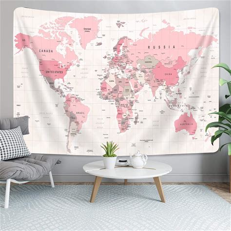 Pink World Map Tapestry, Map of World Vintage Topography Educat