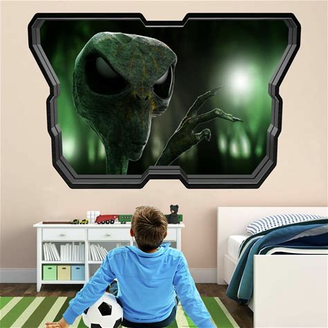 Azutura Green Alien Porthole 3D Space Wall Sticker Available In 8 Sizes Digital