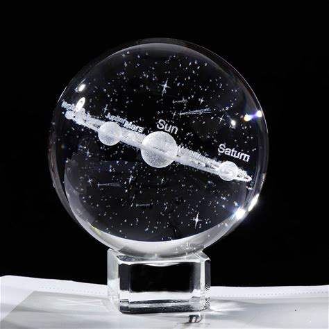 3D Solar System Crystal Ball Engraved Solar System Miniature Planets Model Solar System Crystal Ball