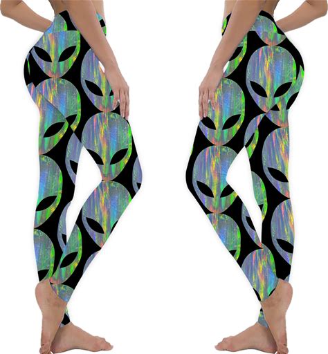Women's High Waisted Alien Inspired Leggings - Black & White Sci-Fi Themed Athletic Pants For Stylish Fans