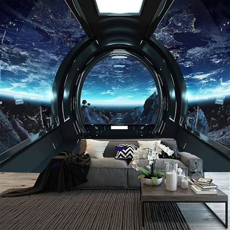 FENDROM Spaceship Tapestry Wall Hanging Futuristic Science Fiction Wall Tapestry Sci Fi Space Ship Interior Space Station Planet Earth Tapestries For